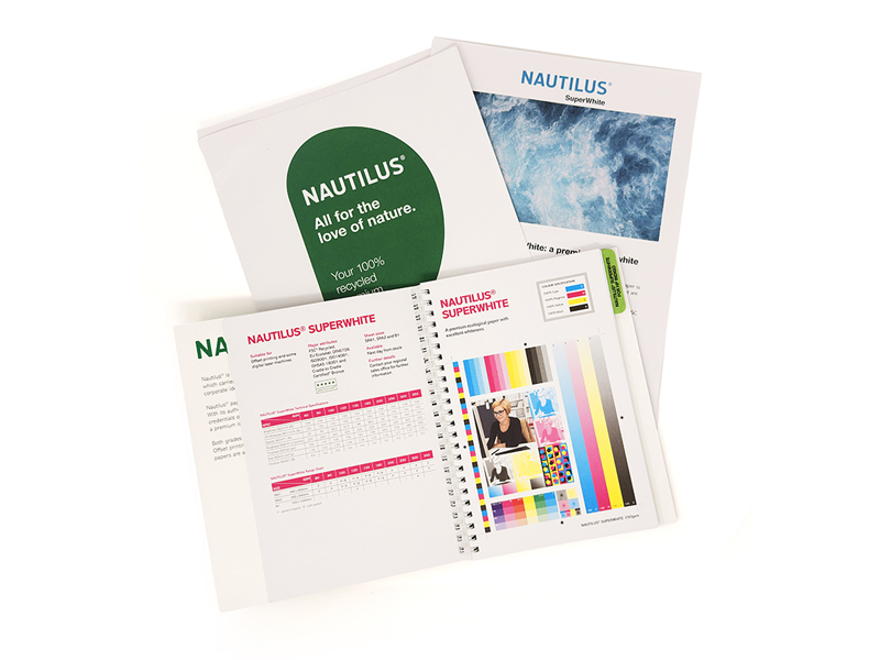Nautilus collection, unique surface for ink density and sharp detail. FSC accredited, EU Ecolabel certified, and stringent Blue Angel environmental criteria.